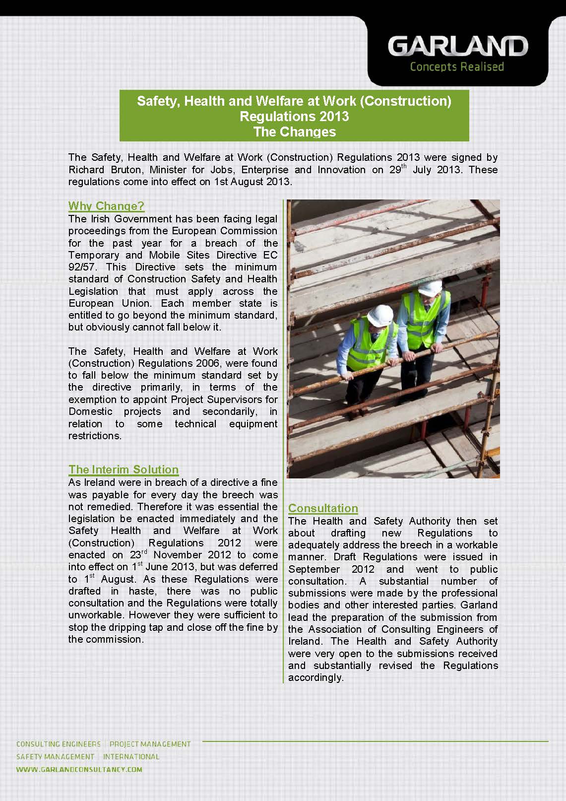 The Safety, Health and Welfare at Work (Construction) Regulations 2013 were signed by Richard Bruton, Minister for Jobs, Enterprise and Innovation on the 29th July 2013. New duties will now be imposed on house owners when doing work on their own homes, which up until now were exempt. The regulations come into force on the 1st August 2013. Our guide has been mentioned in the September 2013 edition of the Health and Safety Review.