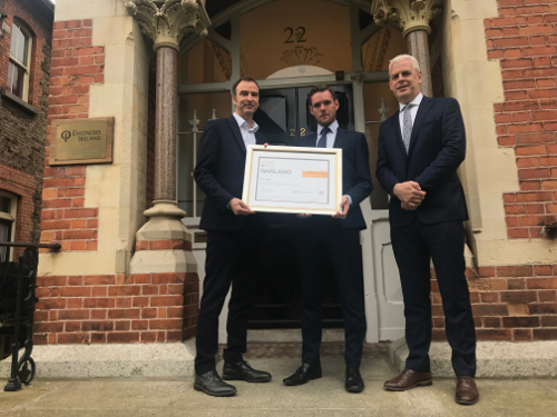 Pictured receiving the company’s parchment from Engineers Ireland’s CPD Team Leader Aidan