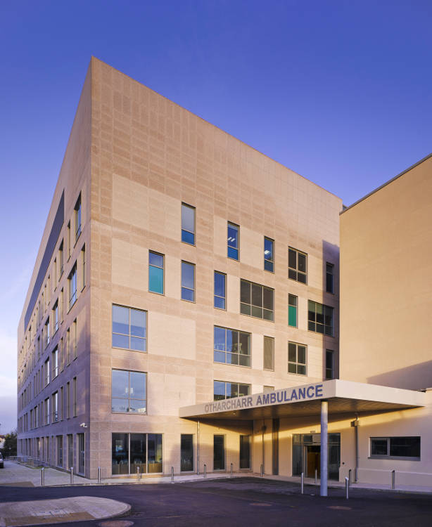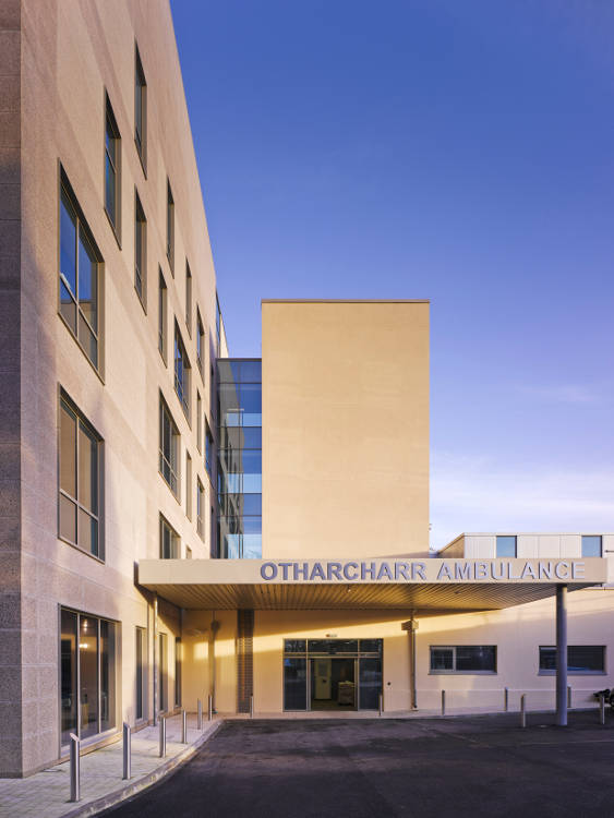 Ancillary works included an extension to the existing Stand by Generator / Sub-station Building, demolition of an existing stair core, temporary relocation of the dialysis department, the diversion and upgrade of the hospital campus ring road, construction of ambulance drop-off area, modification of existing car parks and diversion / upgrade of various existing underground services.