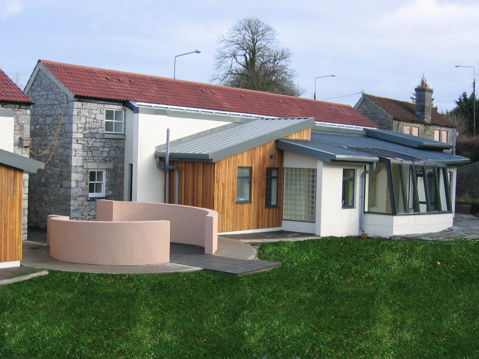 This residential healthcare project which provides sheltered accommodation for persons with learning difficulties involved the full restoration of a twin terrace of derelict cottages (protected structures) on the main street of Stradbally and the construction of contemporary rear extensions including new access ways and parking areas to the rear.