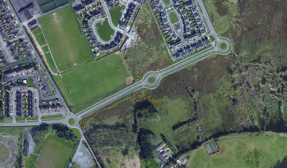 Phase 1, of this construction, serves 15ha of development lands for housing at Shannon Town. The project consisted of the construction of a 0.6km of 7.3m-wide single carriageway together with three roundabouts, street lighting, footpaths and cycle tracks together with associated sewers, drains, watermains, rising mains, street lighting, fencing and gas, electrical and telecommunication duct networks. Also included were diversions of an existing 450mm dia. trunk main and a 375mm dia. foul sewer rising main. The road has 10m-wide margins on each side for services. The soils consisted mainly of alluvial silts and estuarine clays with pockets of organic material (Peat).