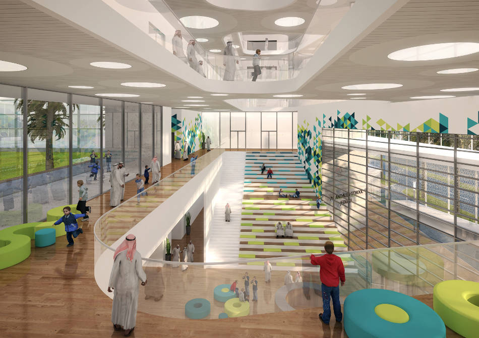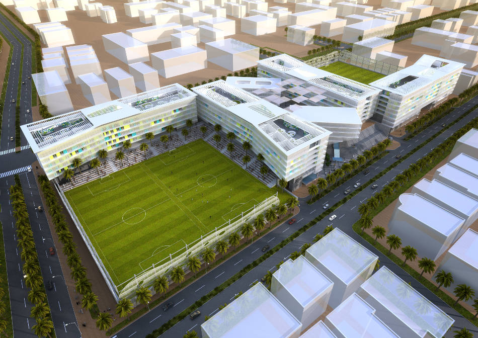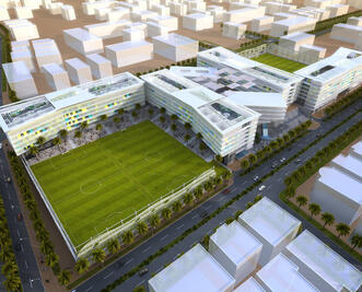The 48,000m2 site has been designed to accommodate over 4,000 students. The complex consists of several elements including primary, upper primary, intermediary and secondary schools along with administration and sports facilities.