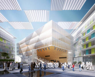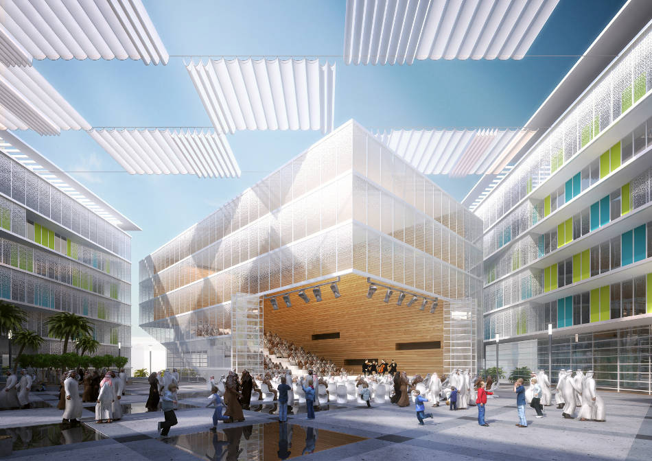 These elements have been arranged on the site to create a place where students, faculty and visitors can thrive in their individual and collective endeavors. This is a teaching and learning community where each of its program elements contributes and enhances the overall educational environment of the campus. This new landmark educational complex master plan is designed to improve the quality of education within the Kingdom of Saudi Arabia.