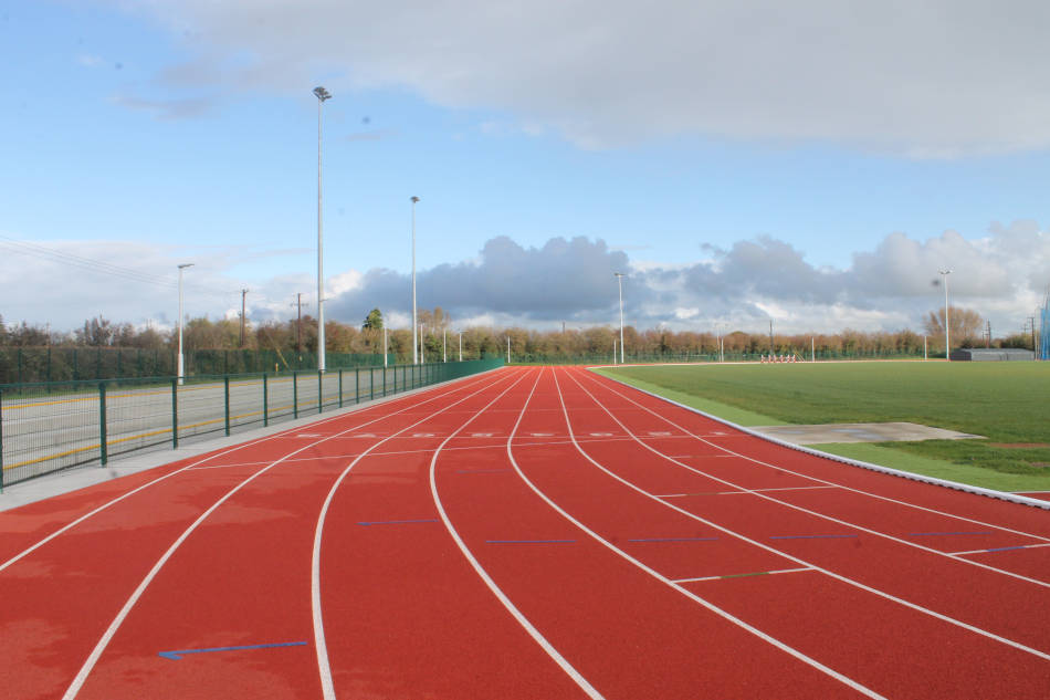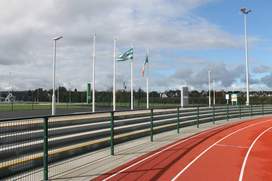 Situated within Newcastle West, this cutting-edge athletics hub represents a major investment in the region's sports infrastructure. This regional athletics hub features an 8-lane synthetic track of world-class standard, complete with track and field facilities and a walking path. The track is fully illuminated by ten sports floodlighting masts equipped with LED lamps that meet IAAF Class 2 standards, ensuring optimal visibility during winter conditions. The new municipal facility was designed and built with the full range of track and field events catered for.