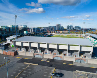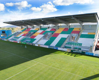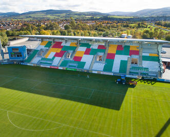 GARLAND provided civil & structural engineering services for this project, which included the detailed design of the precast concrete (PCC) foundations and all steelwork plus associated connections. The project was on a very tight timescale in order to be completed for the upcoming football season. It necessitated intensive collaboration with the PCC subcontractor and the architect regarding the required Revit models, as well as close cooperation with the precast concrete manufacturer to ensure the design was suitable for the lateral stability of the stand and the interface between stand and foundations. To be suitable for the conditions on site and the tight timescale, large pad PCC foundations were chosen.