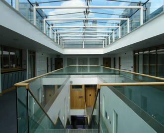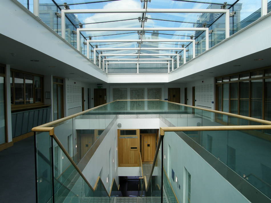 The two-storey County Circuit Courthouse in Limerick is a protected building. In 2002 a need for refurbishment was identified and Garland were commissioned to provide civil and structural engineering services. The project included refurbishment of the existing building and the creation of an additional storey to provide office space. Works included demolition of the existing roof, ground and first floors, and the construction of a new suspended ground floor, composite steel and concrete two-storey structure, and a cantilevered boardwalk on the quay wall. The new layout featured a glazed well in the atrium and natural ventilation provided by passive ventilation stacks.