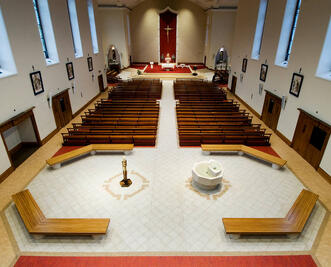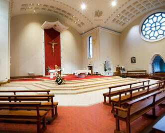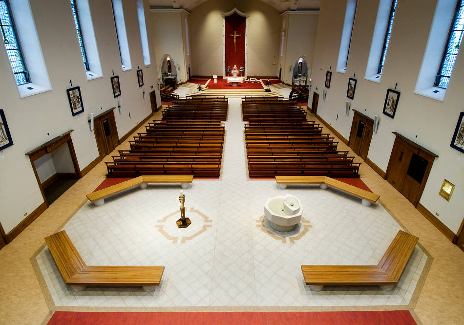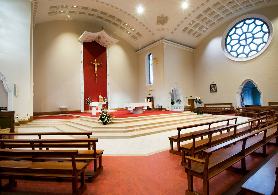 Thomas Garland & Partners were the Structural and Civil Engineers for the original church, which opened in 1956. Due to the passage of time, a major refurbishment was planned for the Jubilee Celebrations. The project involved the complete survey of the original building fabric and a programme of works was agreed with the parish. A new zoned under-floor heating system was installed which required the entire ground floor to be removed. The new 200mm thick concrete slab was poured incorporating the under-floor heating loops within its depth rather than the traditional 2-stage slab construction. Polypropylene fibre reinforcement was used in lieu of steel mesh. Provision was made in the slab for all the services to items such as the new Baptismal Font, the Ambo and Altar. An extensive system of walkways were installed in the attic space to allow for all the new lights to be serviced from that space rather than bringing hoists into the church. Archbishop Martin rededicated the church on the 17th February 2007.