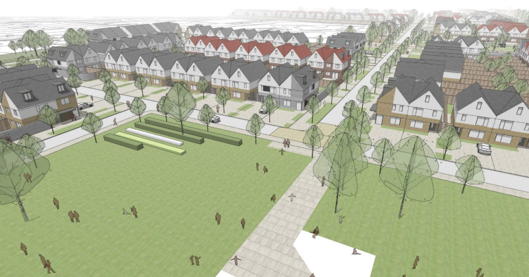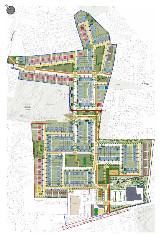 The development involves the construction of 480 residential units, over two distinct phases, complete with crèche, retail units and café on the former Magee Barracks, Kildare Town.