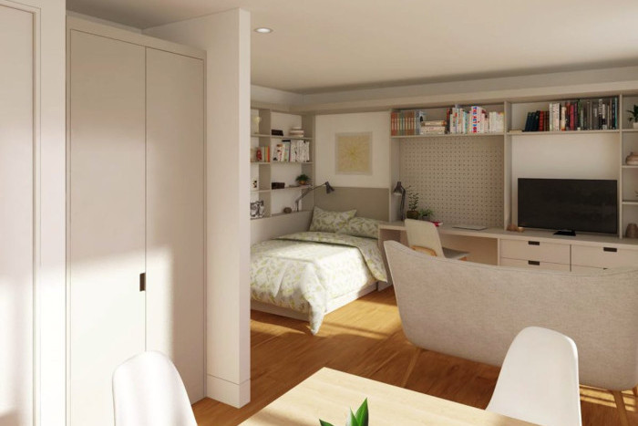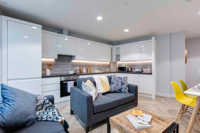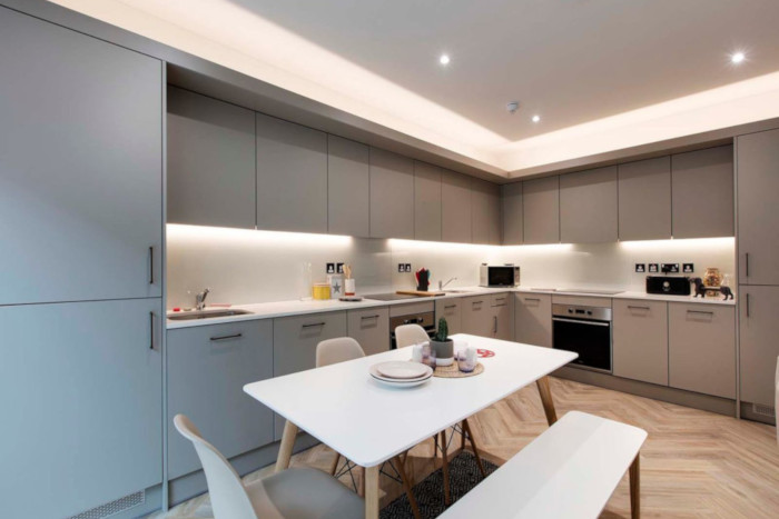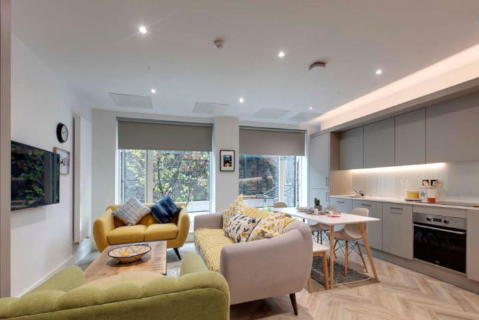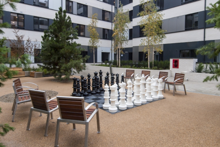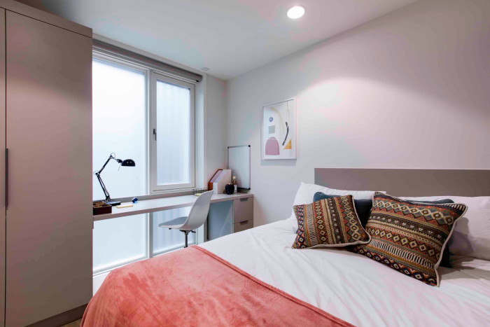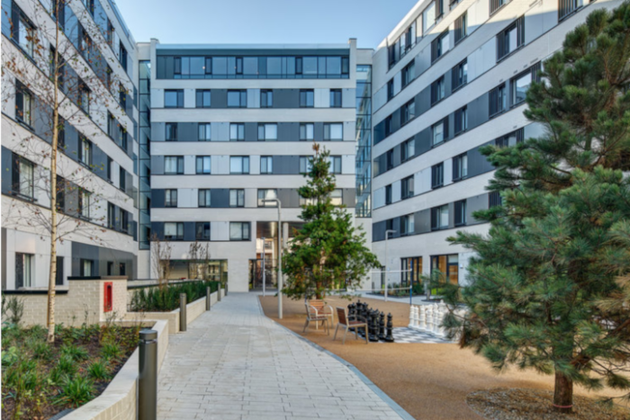 With a total of 603 student spaces, the Kavanagh Court site in Dublin consisted of 17,000m² over seven storeys, dispersed over four blocks, containing a mixture of 4 - 8-bed units. The development also included social spaces such as an onsite gym, cinema, conferencing suites, communal study areas, kitchens and large terraces. The building encloses a central landscaped courtyard which includes a badminton and table tennis area.